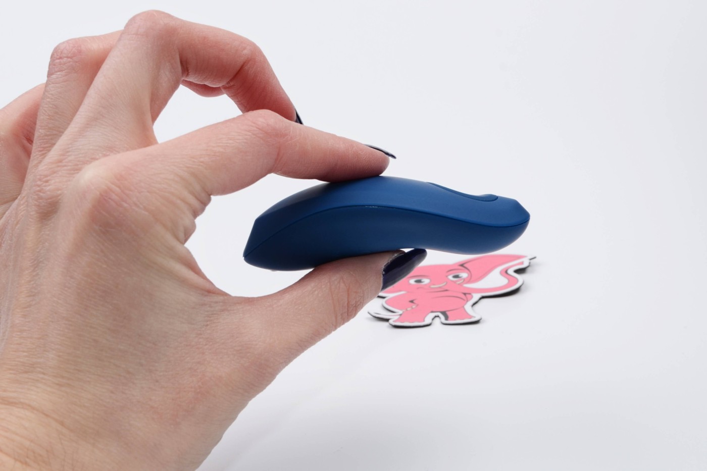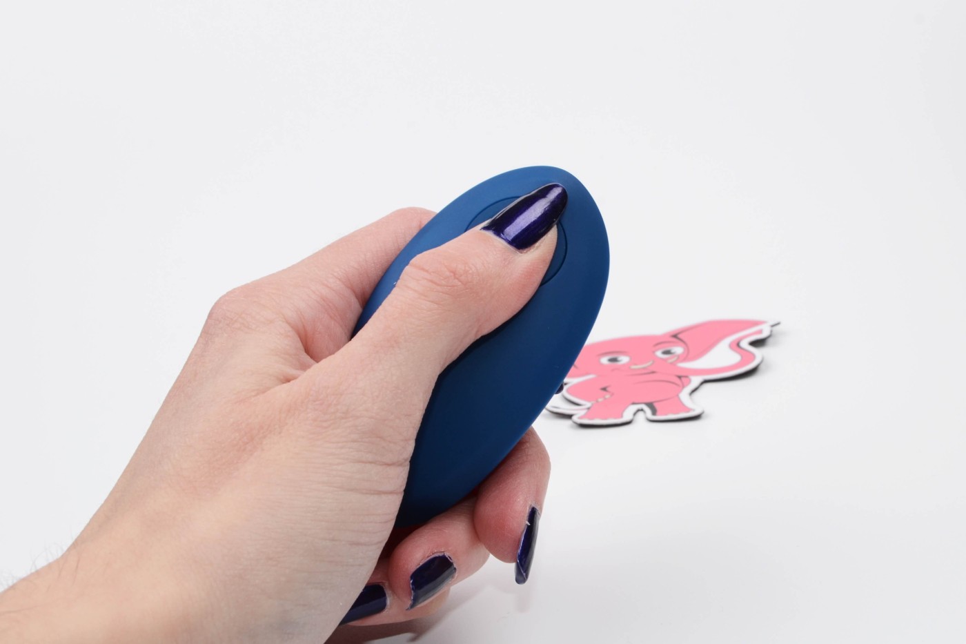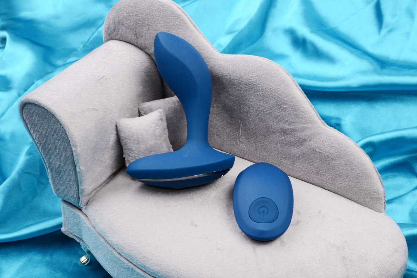 Designovo krásny, tmavo modrý análny kolík zaoblených tvarov má výrazne zakrivenú špičku, ktorá je celkom bacuľatá. Smerom k pätke sa ale pomôcka zužuje a jej tenký krk nadväzuje na elipsovitú pätku, ktorá pekne zapadne medzi polovičky. Oválny ovládač sa dobre drží v ruke. Celkovo pomôcka vyzerá luxusne a môžete ju darovať ako darček.