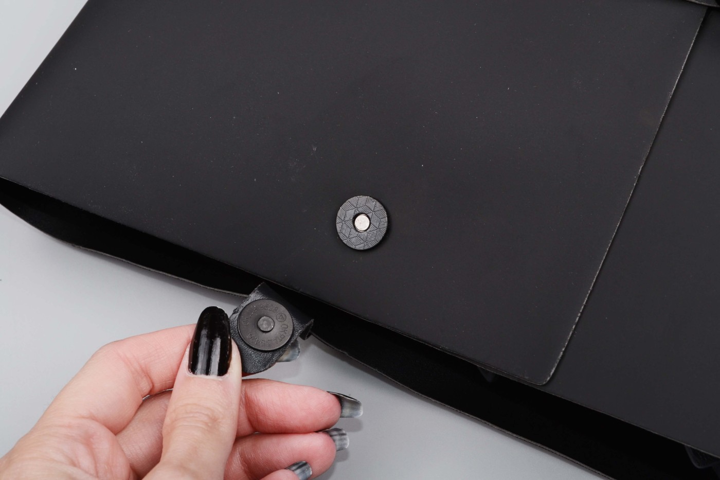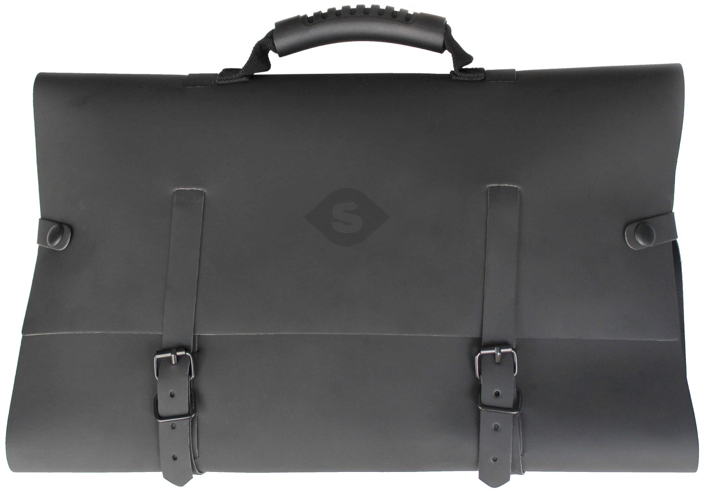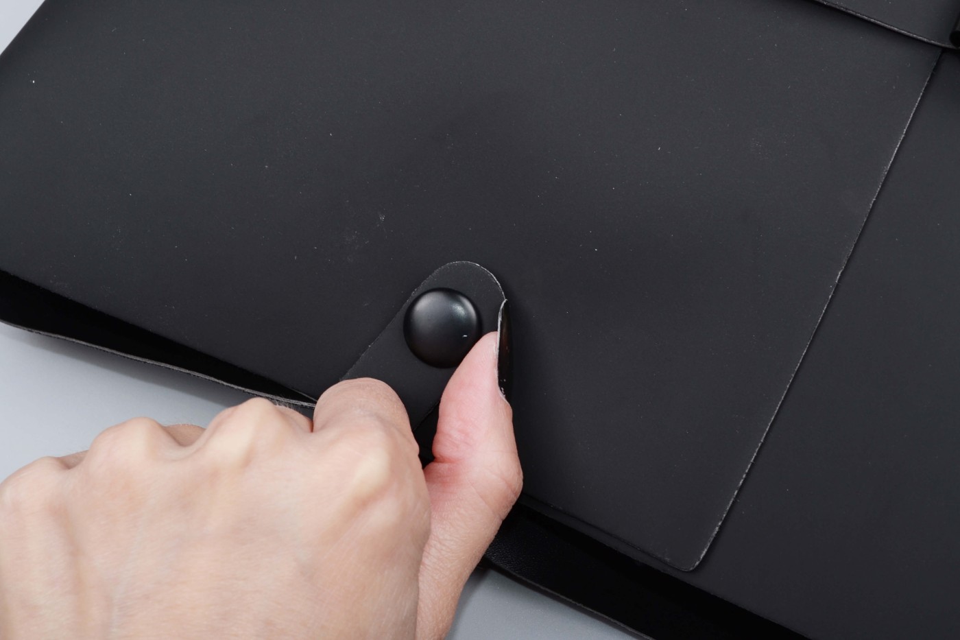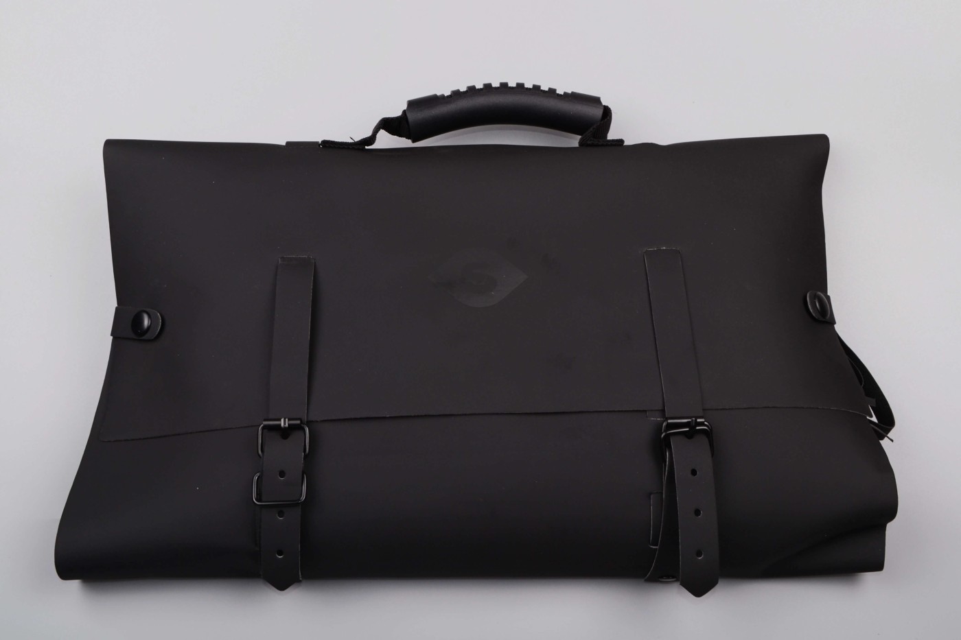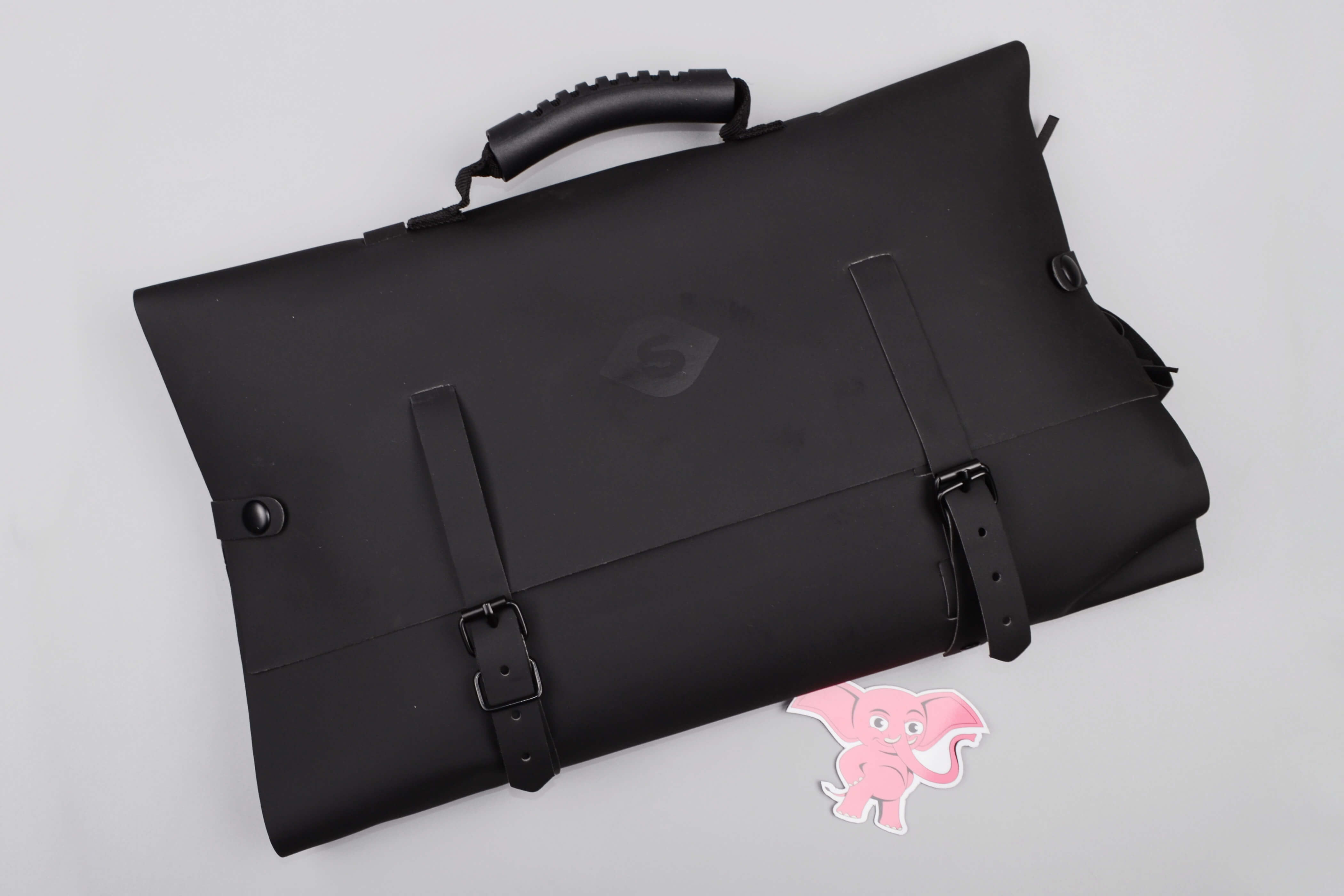 Čierny, koženkový kufrík pôsobí nenápadne a pritom vzbudzuje zvedavosť. Zapína sa po stranách na dva cvočky a vpredu pomocou dvoch pásikov so sponou, ako aktovka.
