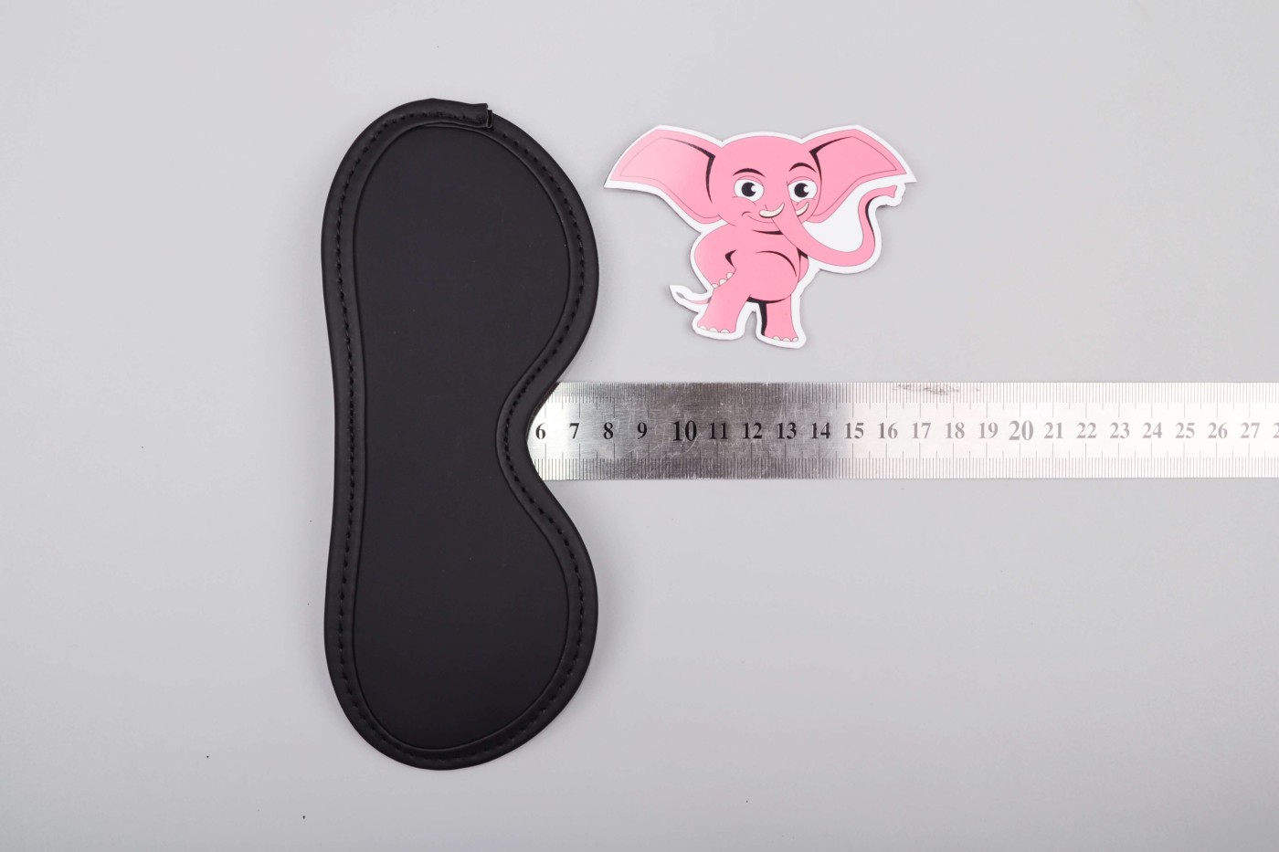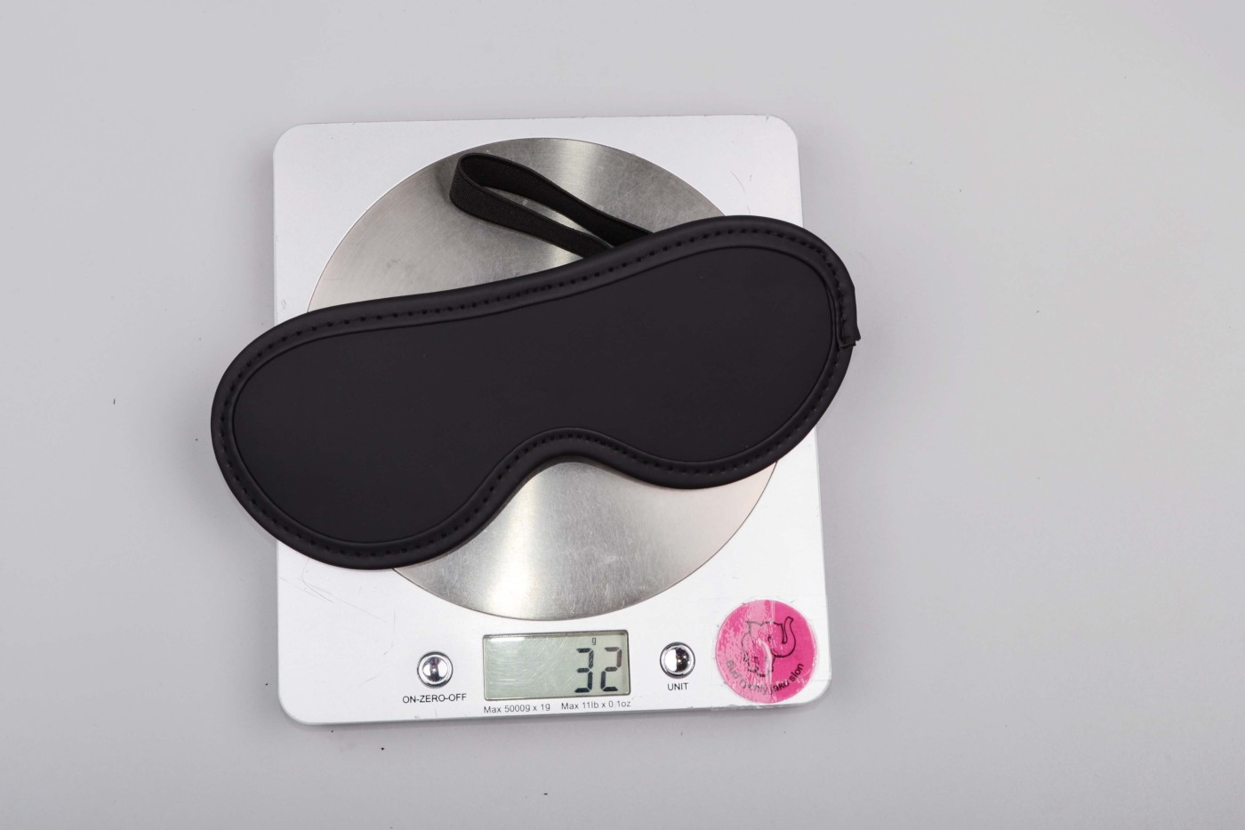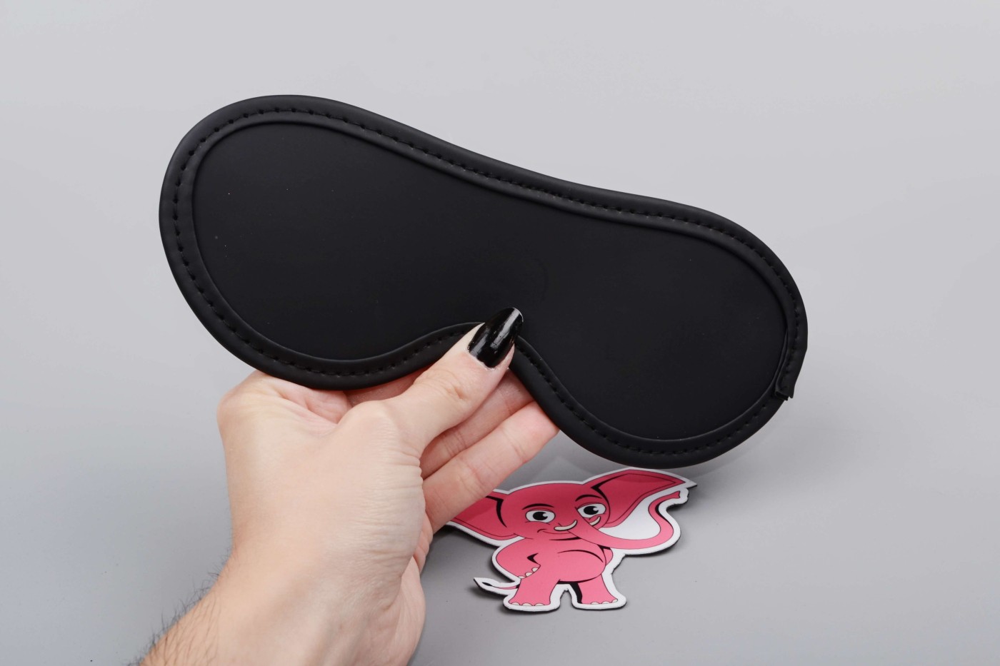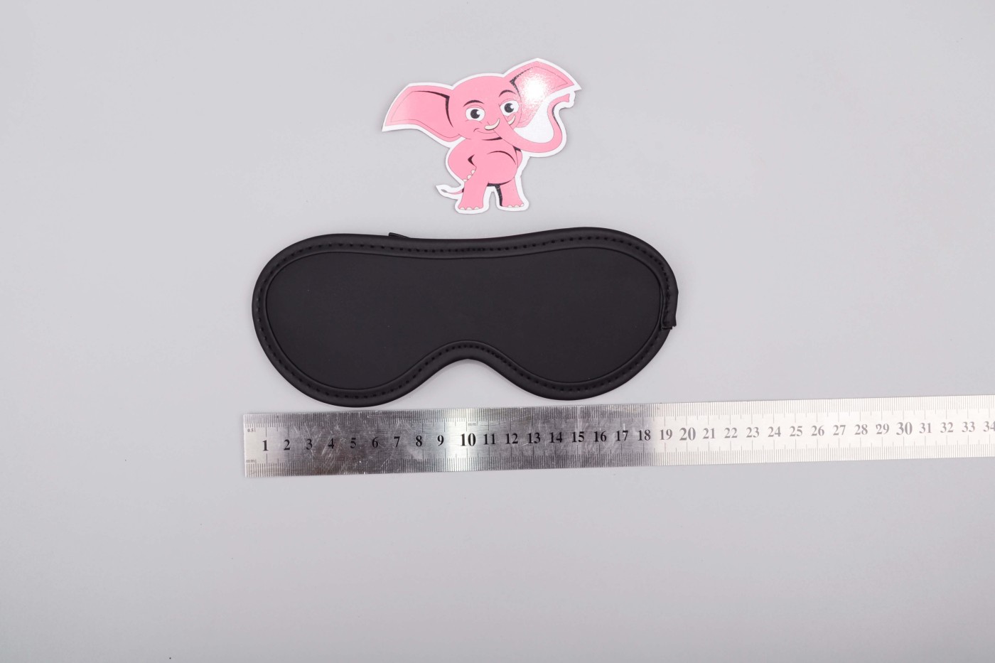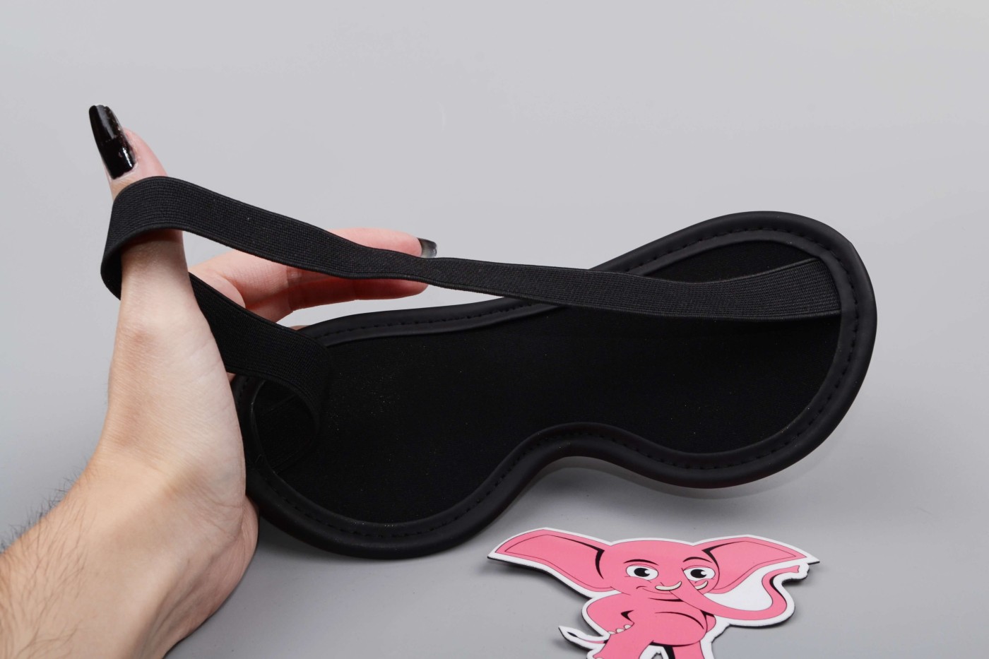 Maska na oči vyzerá ako klasická škraboška a na hlave drží pomocou pevnej gumičky, ktorá je k maske prišitá na oboch stranách.