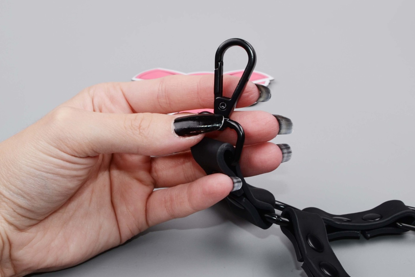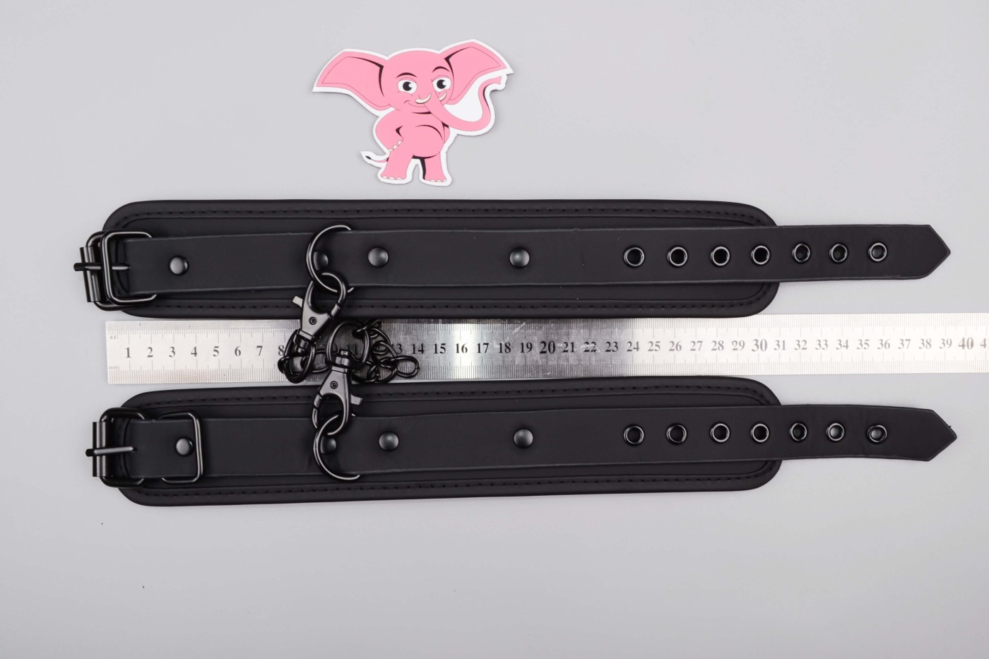 Putá na ruky aj nohy k sebe môžete spojiť pomocou pútacieho očka so štyrmi karabínkami, ktoré nájdete v kufríku. Všetky putá sú široké a nastaviteľné, takže dobre sedia na úzkom ženskom aj hrubšom mužskom zápästí. Putá na ruky majú 6 dierok, zatiaľ čo putá na nohy ich dostali 7.