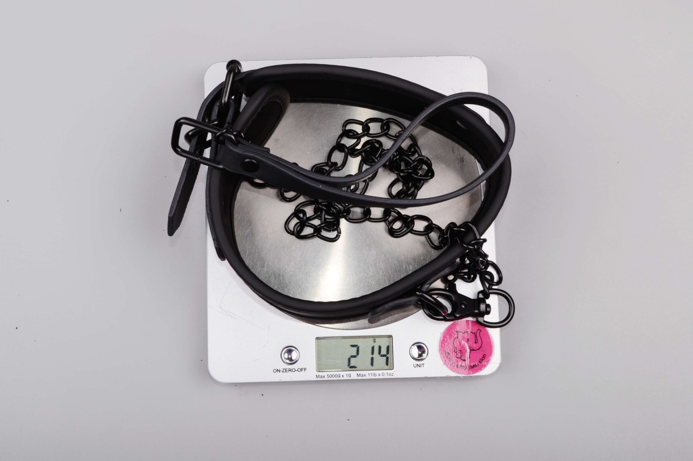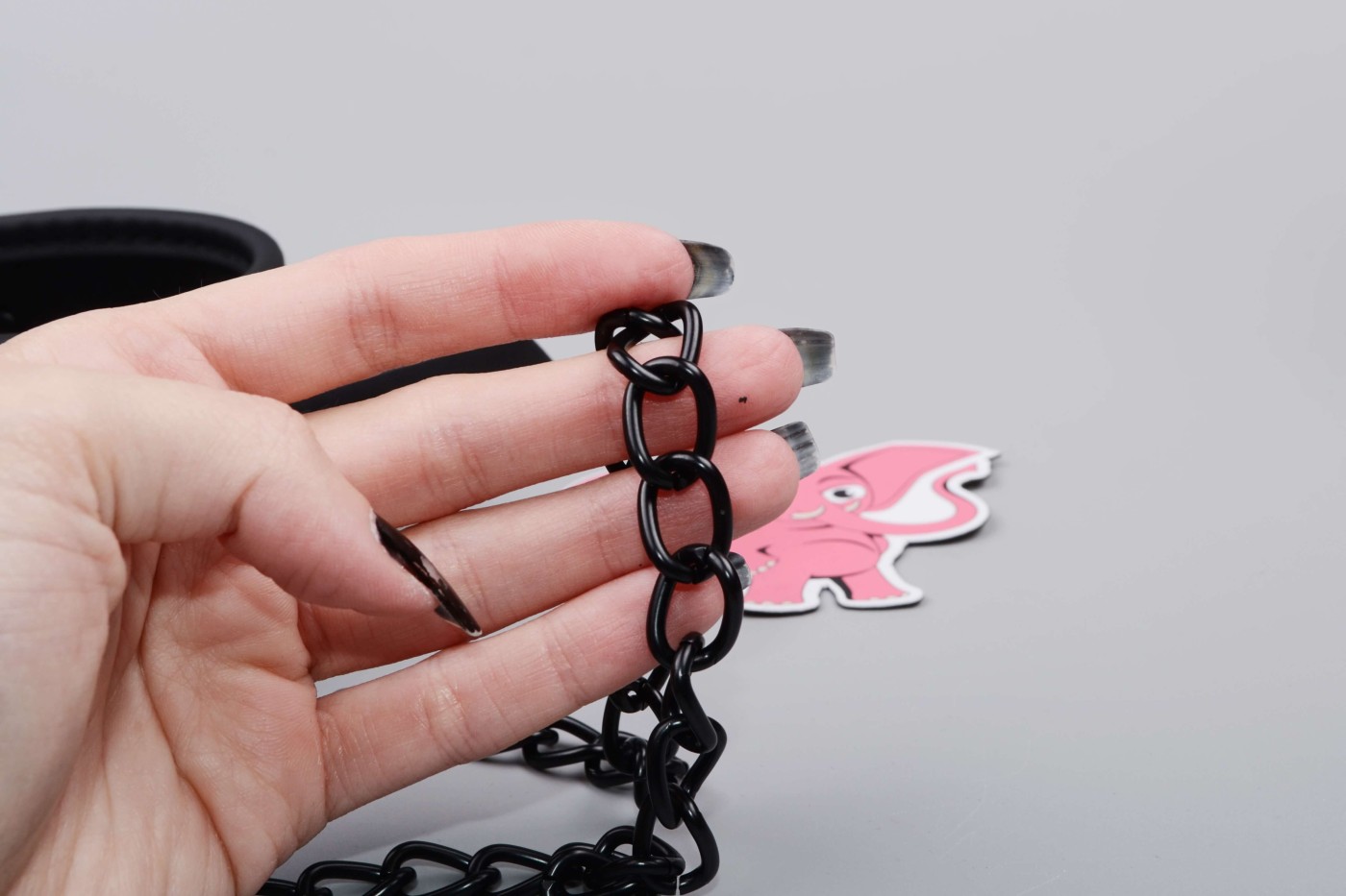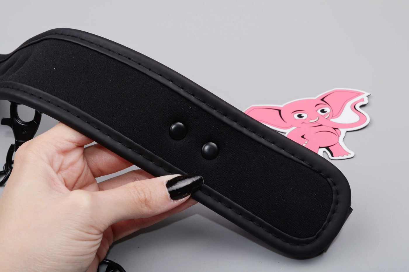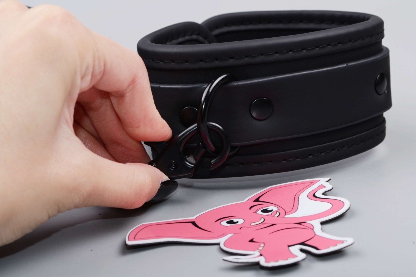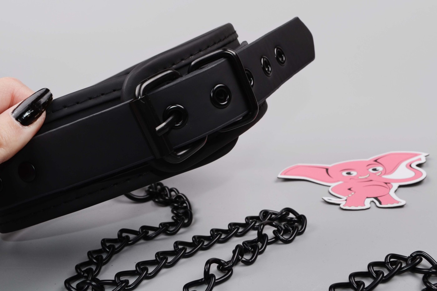 K širokému obojku, ktorý má 5 dierok, môžete pripojiť aj kovové vodidlo, ktoré oceníte pri pet play. Môžete si za neho i len pritiahnuť svoju submisívnu polovičku k sebe. Vodidlo sa za koženkové pútko dobre drží v ruke a celkovo vyzerá pevne.