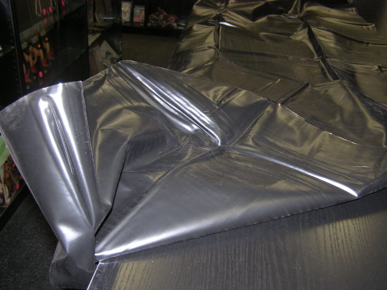PVC prestieradlo Dark Thoughts ochráni vašu posteľ, sedačku alebo podlahu pred nečistotami a vlhkosťou. Prestieradlo po hrátkach ľahko umyjete, takže si naplno vychutnáte aj tie najdivokejšie fantázie ako pissing, squirting alebo kĺzavé nuru masáže. Či už ste fanúšikom fetiša a iných BDSM hier, alebo hľadáte praktickú ochranu proti najrôznejším škvrnám, PVC prestieradlo vám nesmie chýbať v zbierke.