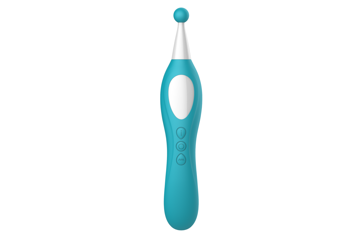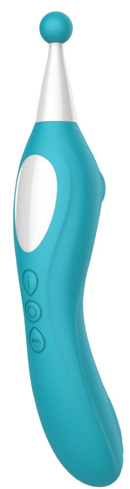 Po zapnutí vibrátora krátkym stlačením horného tlačidla so znakom písmena „i“ zapnete bodovú funkciu. Jej tlačidlo sa rozžiari modrou farbou. Krátkymi stlačeniami prepínate vibračné programy a dlhým podržaním túto časť zase vypnete.