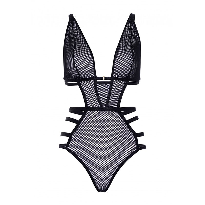 Sieťované erotické body čiernej farby. Priehľadná sieťka a nekonečný výstrih z teba urobia bohyňu! Krásna čierna bielizeň zdôrazní prsia a vyčaruje ti osí pás. Čierne prúžky zmyselne priliehajú k bokom a opticky zužujú pás. Sexi tangá zadný diel predvedie tvoj zadoček v plnej kráse. Body má nastaviteľné ramienka.
