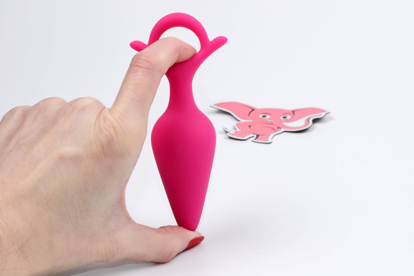 Análny kolík s očkom vyzerá ako malá kotva, ktorá pekne zapadne medzi polovičky. Vďaka zúženej špičke a hladkému povrchu vkĺzne do zadočku ako po masle. Praktické prstové očko sa dobre drží a uľahčuje zasúvanie aj vysúvanie pomôcky.