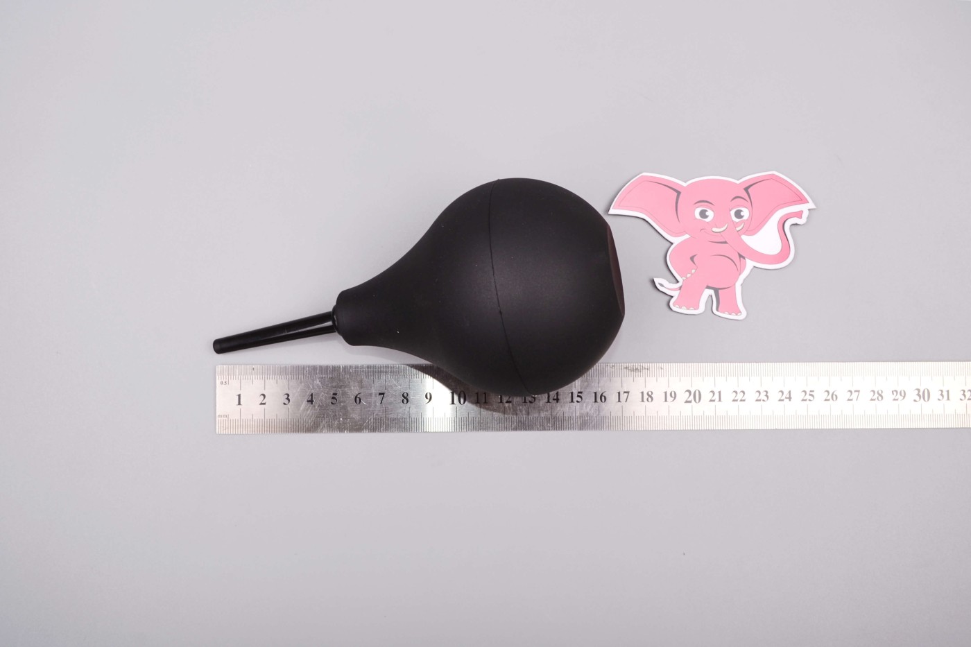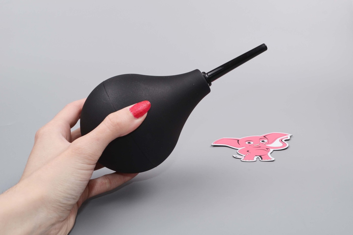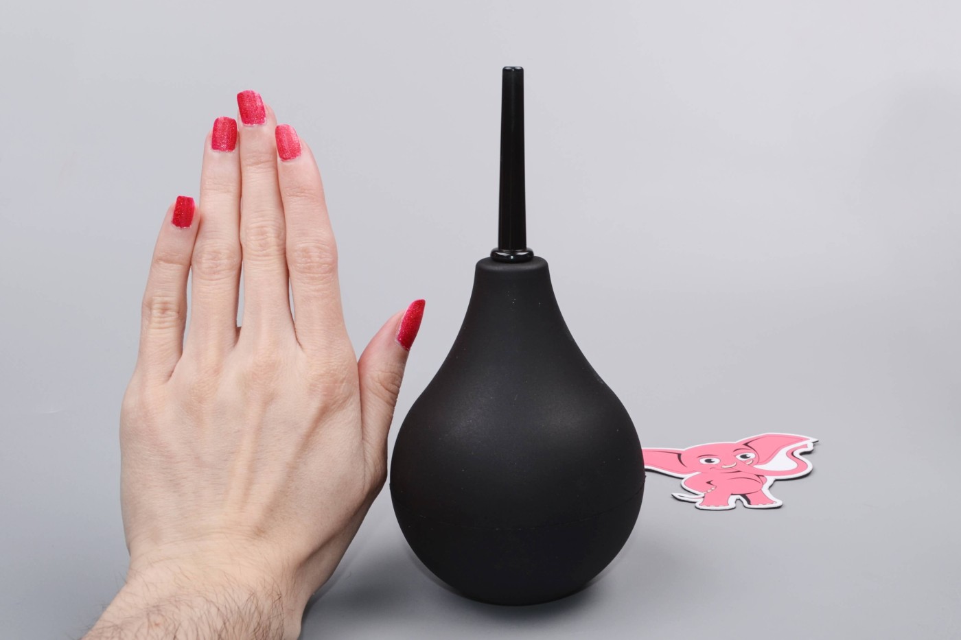 Balónik z silikonu aj po naplnení vodou jemne stlačíte prstami. Gumová manžeta bráni vytečeniu tekutiny mimo aplikátora. Rozprašovač z ABS plastu si jemne, ale spoľahlivo prekliesni cestu zadočkom.