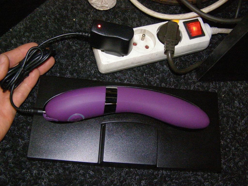 Vibrátor sa dobíja cca 1 hodinu pomocou priloženej nabíjačky. Nabíjanie spoznáte podľa blikajúcich kontroliek. Nabíjačka sa ľahko zasúva do vibrátora (v bielej časti je otvor na nabíjanie). Pri nabíjaní bliká na vibrátore červená LED dióda .