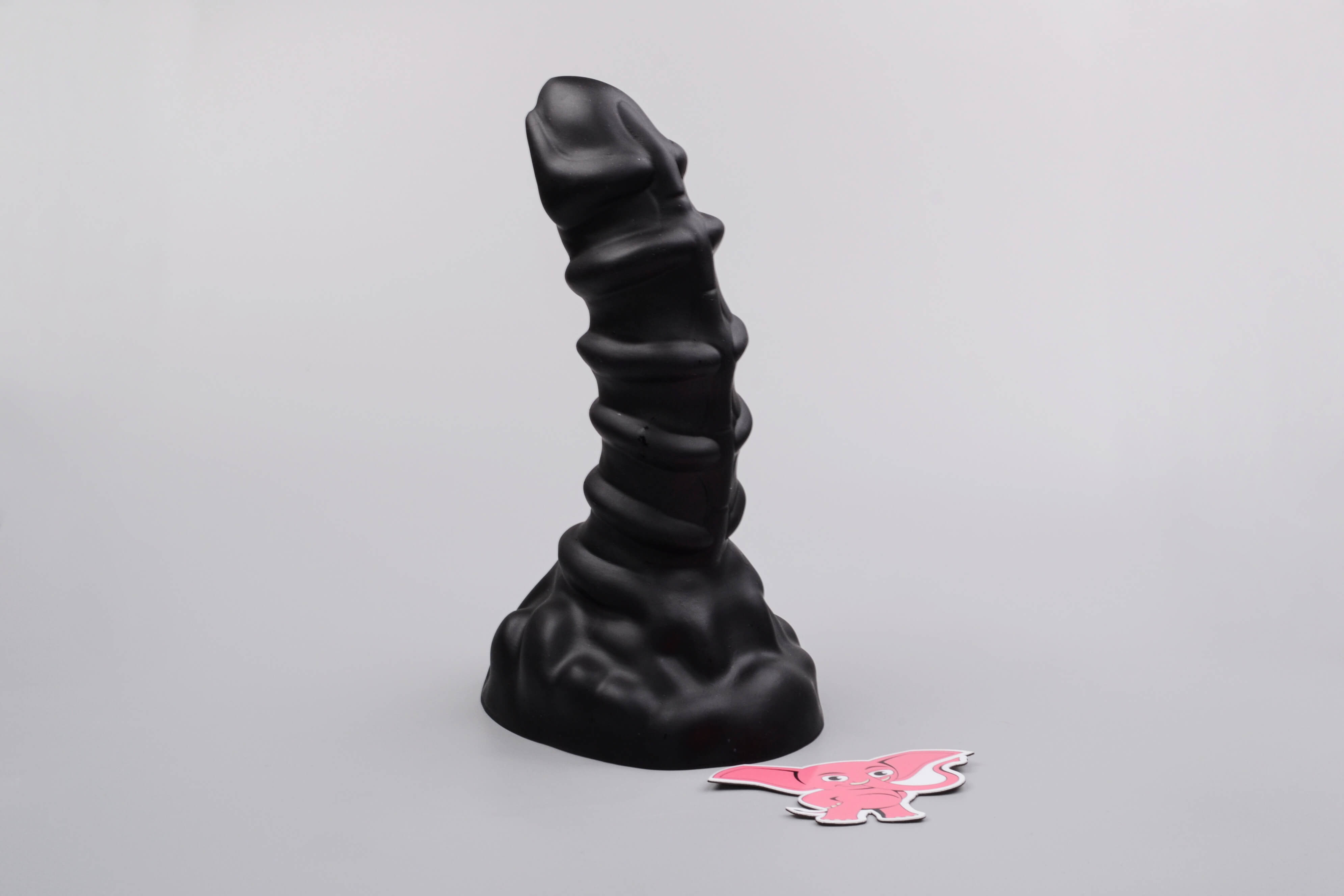 Veľké čierne dildo s výrazným rebrovaním pripomína trochu votrelcov. Do ruky trochu ťažšia hračka sa celkom dobre drží a vďaka svojmu miernemu prehnutiu premasíruje bod G. Páči sa nám originálny design dilda aj jeho široká základňa, vďaka ktorej ho môžete postaviť na zem, stoličku alebo stôl a jednoducho naň nasadnúť.