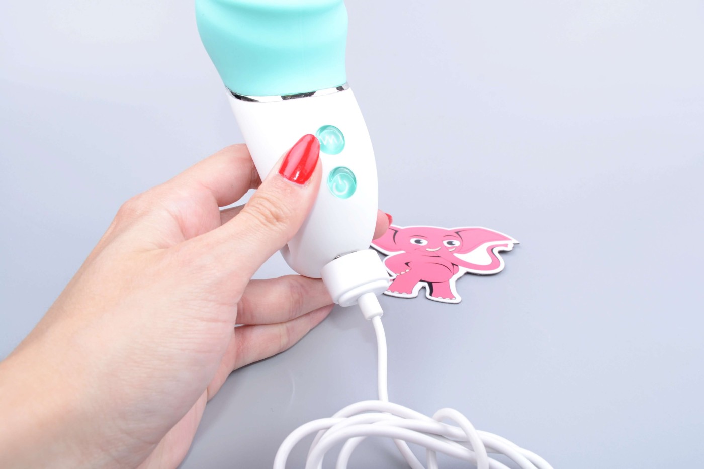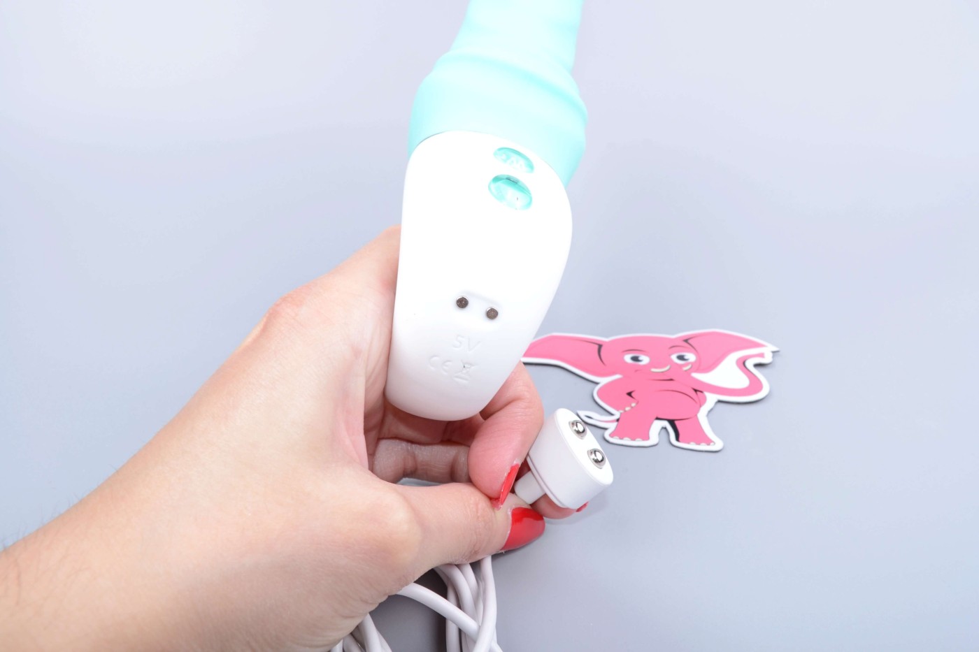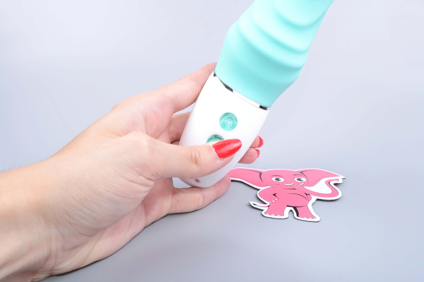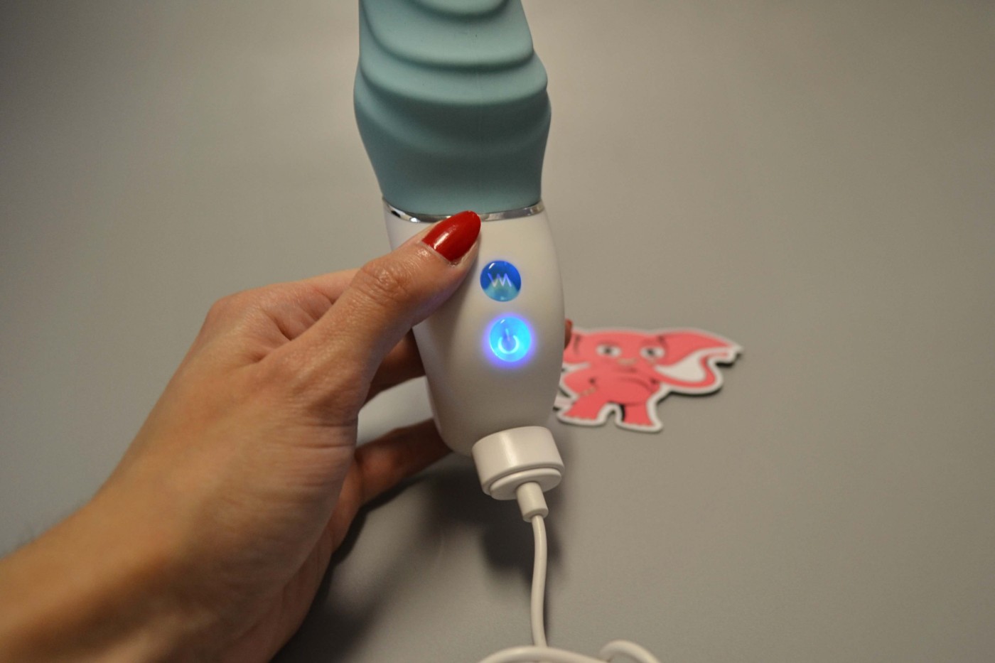 Jednoduché ovládanie pomocou dvoch tlačidiel zvládnete aj s jedným chobotom. Aby ste vibrátor zapli, musíte dlhým, cca 2 sekundovým stlačením stlačiť spodné tlačidlo. Po zapnutí sa pod ním rozsvieti dióda, ale vibrovať ešte nezačne. Pre spustenie vibrácií musíte krátko stlačiť horné tlačidlo s vlnovkou. Ďalšími krátkymi stlačeniami vrchného tlačidla jednoducho meníte vibračné programy. Opätovným dlhým stlačením spodného tlačidla potom vibrátor zase vypnete.