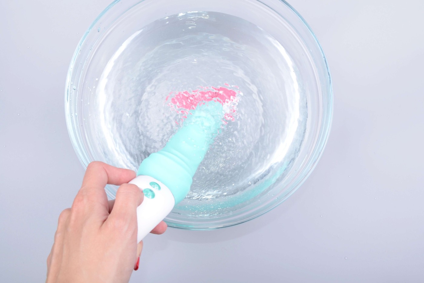 Vodotesný vibrátor Rumba Blue umyjete raz dva. Pred aj po každom použití ho starostlivo namydlite a opláchnite prúdom vody. Čističe erotických pomůcek zbaví pomôcku všetkých nečistôt, a to aj tých mikroskopických. Stačí ju len nastriekať na povrch, nechať minútku pôsobiť a potom opláchnuť. Nakoniec vibrátor osušte uterákom a schovajte ho do textilného vrecka alebo originálnej krabičky. Vďaka oddelenému skladovaniu zabránite tomu, aby na seba rôznorodé materiály pomôcok reagovali a poškodzovali sa.