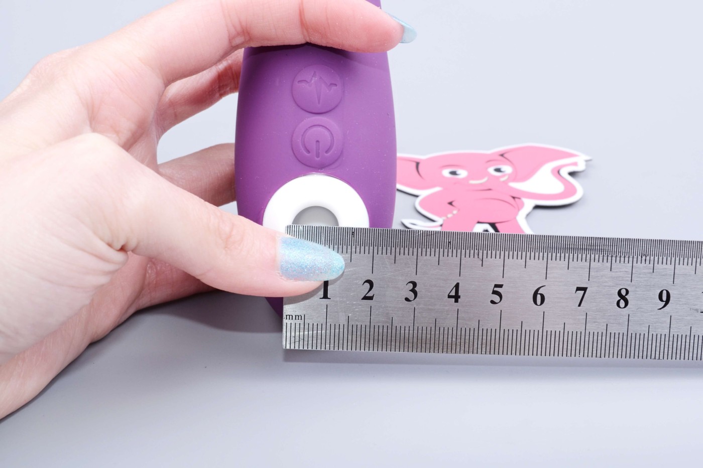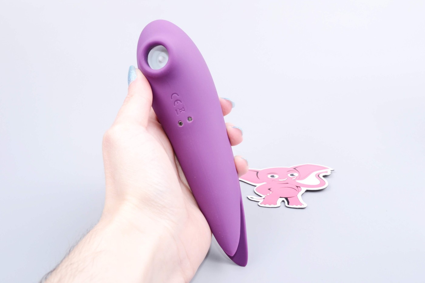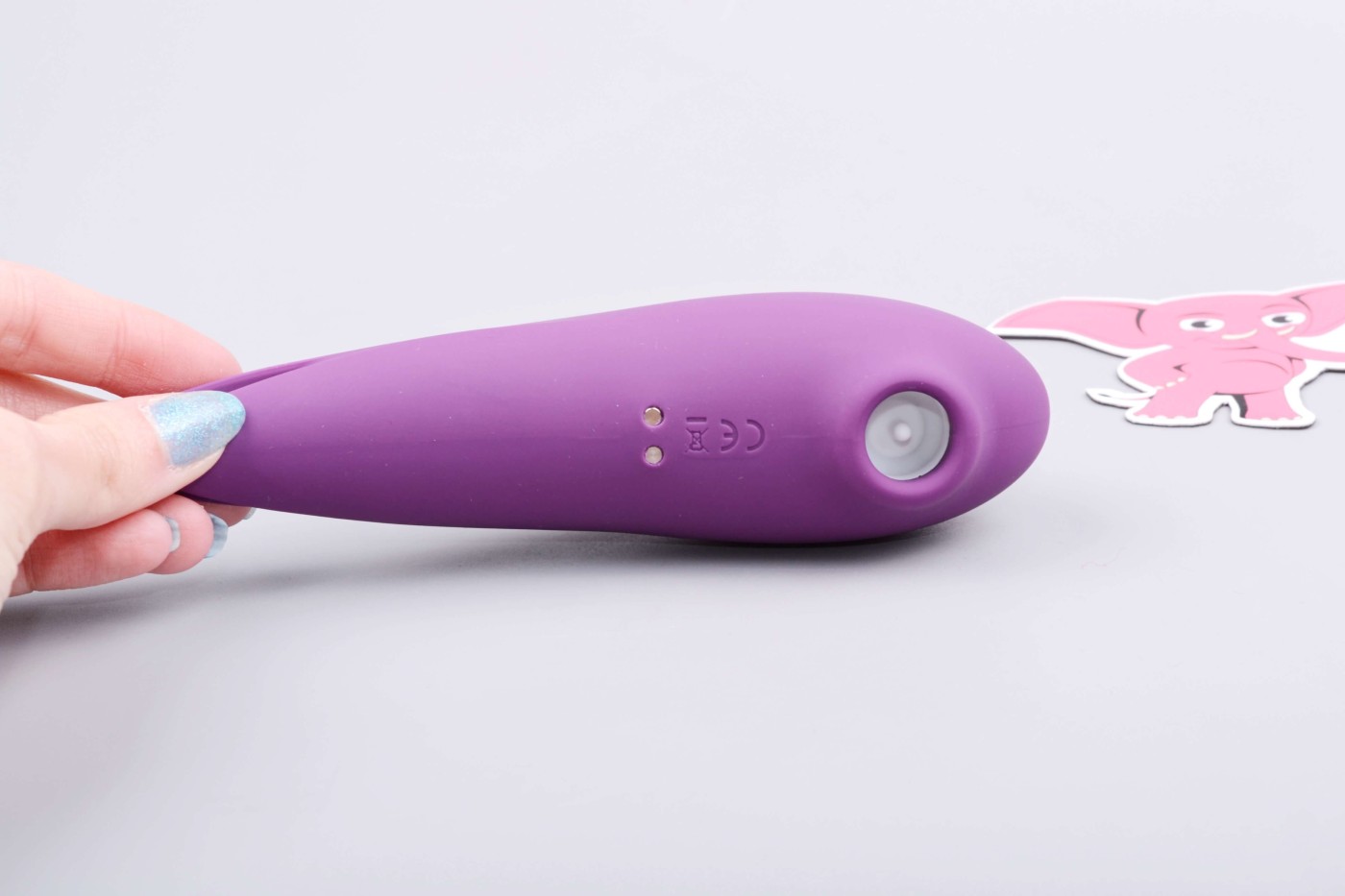 Jednoduché ovládanie pomocou dvoch tlačidiel zvládnete aj potme. Dlhším stlačením hlavného ovládacieho tlačidla za sprievodu fialového podsvietenia zapnete aj vypnete tlakovú stimuláciu v oboch hubičkách na klitoris zároveň. Krátkymi stlačeniami prepínate intenzitu režimu.