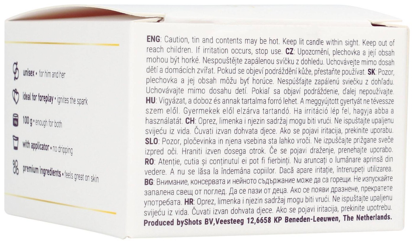 S masážnou sviečkou Tsunami of Love Vanilla Love vstúpite do vzrušujúceho sveta jemných dotykov a hlbokej intimity. Nechajte svoju druhú polovičku, nech vás masíruje príjemne teplým olejom na krku, ramenách, chrbte alebo nohách, a poddajte sa zmyselnej vášni, ktorá zaplaví vaše telo. Erotická masáž podčiarknutá afrodiziakálnou vôňou vanilky premení vašu predohru na nezabudnuteľný zážitok, ktorý si budete chcieť, čo najskôr zopakovať.